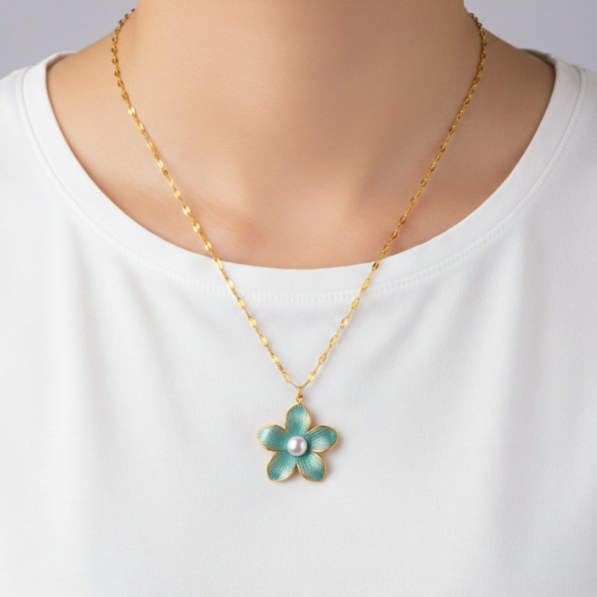 A symbol of love and new beginnings, this flower necklace adds a little reminder to keep your heart open. Crafted from polished metal alloy with a glossy finish, the bold pendant draws focus while the pearl-style bead softens the look at the center.