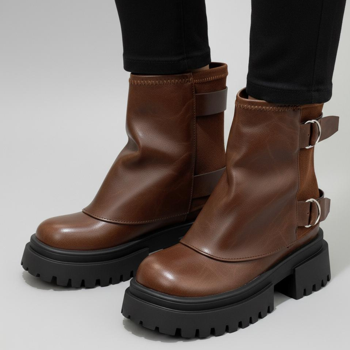 Crafted from smooth man-made leather, this boot has a rich, broken-in feel with a supple finish. The double buckle straps let you adjust the fit just the way you like, while the chunky lug sole adds a confident height boost.