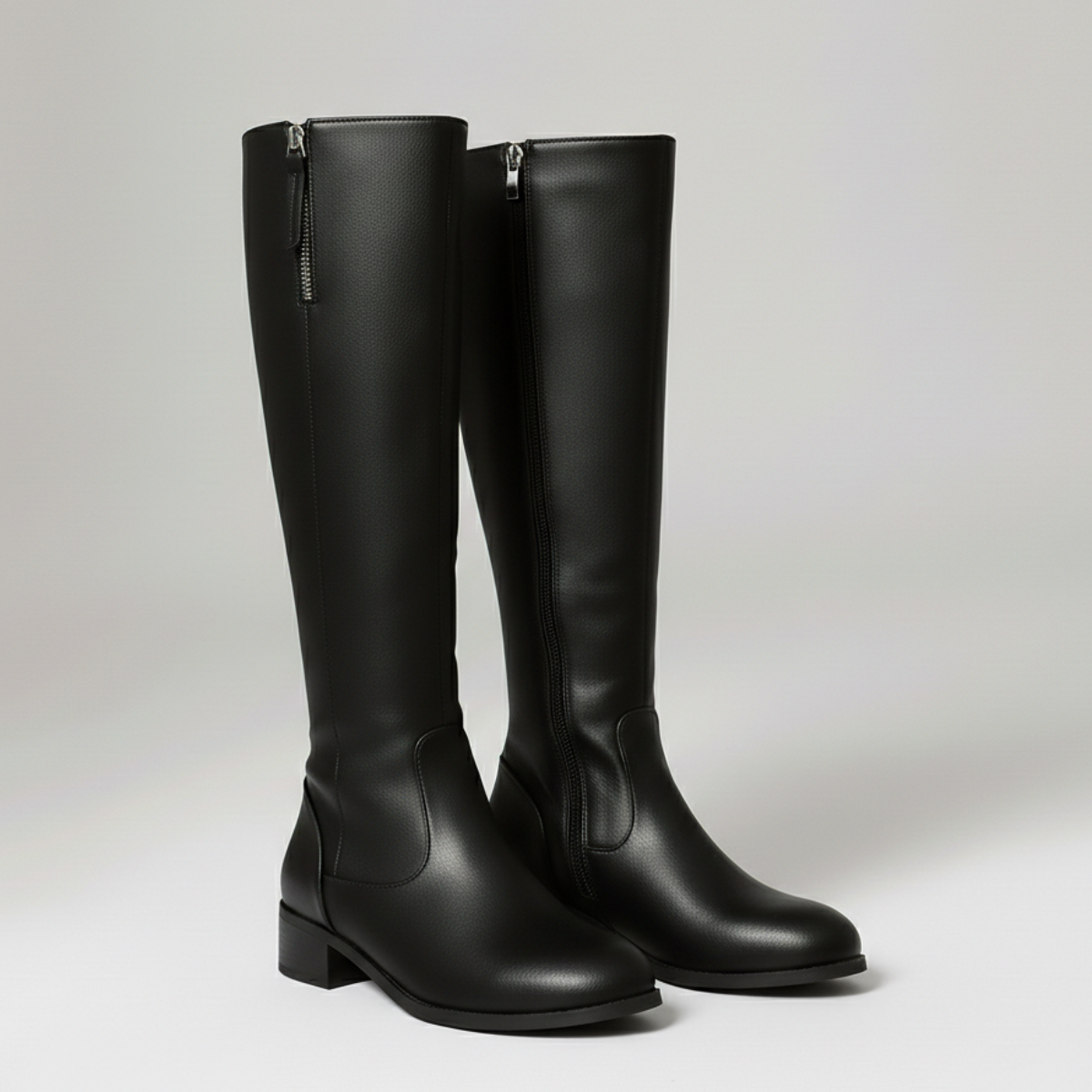 Crafted from smooth man-made leather, these boots stand out with a polished lightly grained finish. The full-length side zipper slips on in seconds, while the low block heel adds a subtle lift for comfortable all-day wear.